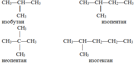 Для простейших углеводородов изостроения сохраняются их несистематические названия: