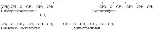 Простые эфиры называют, прибавляя к названию углеводорода приставку алкокси-(RО) или арилокси-(АrО). За основу соединения принимают старший компонент: СН3—О—СН2—СН3 – метоксиэтан.
