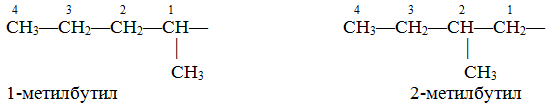 При построении названия сложных радикалов нумерацию их атомов начинают от углеродного атома со свободной валентностью: