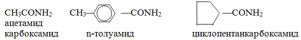 Названия амидов кислот производят от названий соответствующих кислот, меняя окончание -овая кислота на -амид или окончание -карбоновая кислота на -карбоксамид: