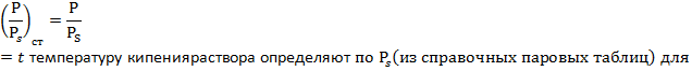 Для разбавленных растворов отношение давления в аппарате Р к давлению паров растворителя при температуре кипения раствора