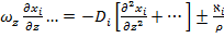 Уравнение выводится из закона сохранения массы i компонента .Если процесс идет с химическим превращением, то появляется удельный источник (сток) массы i компонента  :