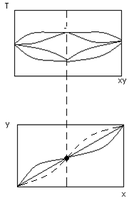 Гипербола ( x, y- диаграмма) выше диагонали, тогда выполняется закон Коновалова.