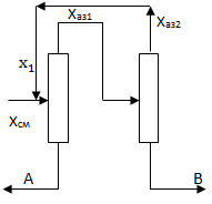 Теоретическая ступень – мнимое контактное устройство, фазы с которой уходят в равновесии. Построить теоретическую тарелку можно между равновесной и рабочей линиями.