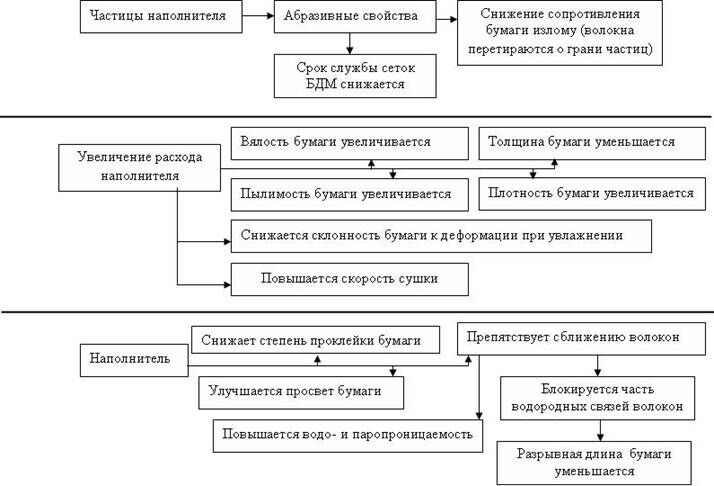 Рис. 32 - Влияние наполнителя на свойства бумаги