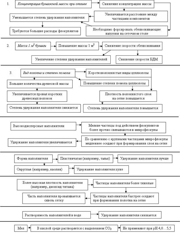Рис. 33- Влияние технологических параметров на удержание наполнителей