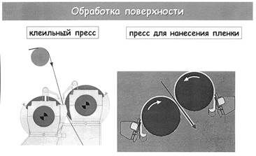 Покрытие может наноситься на промежуточный вал (пленочный пресс) либо непосредственно на бумагу.