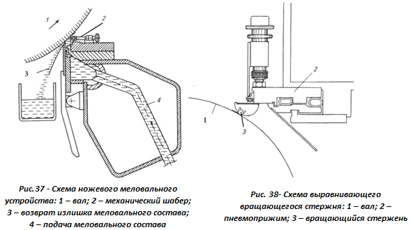 На рис. 37и 38 приведены схемы ножевого меловального устройства и вращающегося стержня.