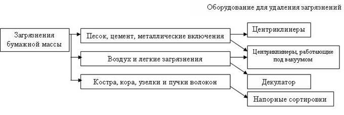 Для получения качественной бумаги необходимо получить массу высокой чистоты. На рис. 46 приведена схема загрязнений бумажной массы.