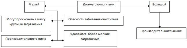 Рис.49 - Схема влияния диаметра очистителя на его работу