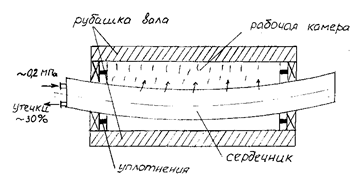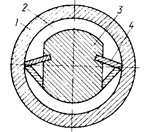 Рис.106 - Вал с регулируемым прогибом типа «Кюстерс»: 1 – цилиндр; 2 – камера; 3 – сердечник; 4 – продольное уплотнение