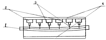 Рис. 107 - Схема прессового вала с регулируемым прогибом: 1 – сердечник; 2 – поршни гидравлической системы; 3 – маслопроводы; 4 – рубашка вала