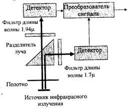 На рис.193 показан принцип измерения влажности с использованием инфракрасного излучения, проходящего через полотно.
