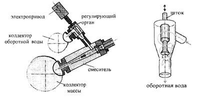 На рис. 195 показана схема ввода разбавляющей воды с использованием специального исполнительного устройства. Главная цель этой конструкции – сохранить высокие скорости потока и микротурбулентность массы.