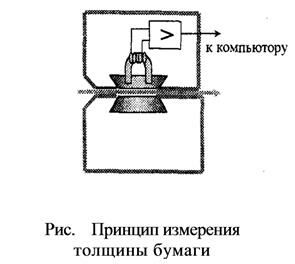 Изменения тока с помощью вторичного преобразователя сигнала передаются в компьютер, где пересчитываются в значения толщины полотна.