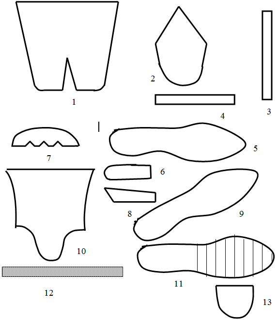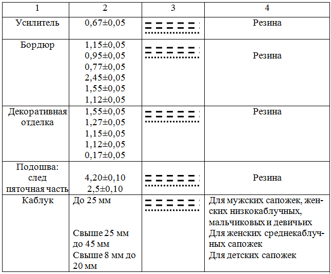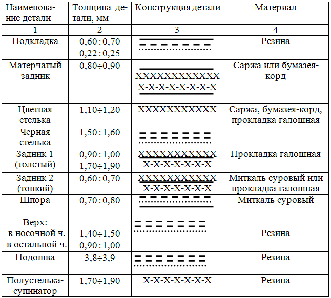 На рисунке 3.1 показаны детали, используемые для сборки сапожек методом клейки, а в таблице 3.1 их конструкция.