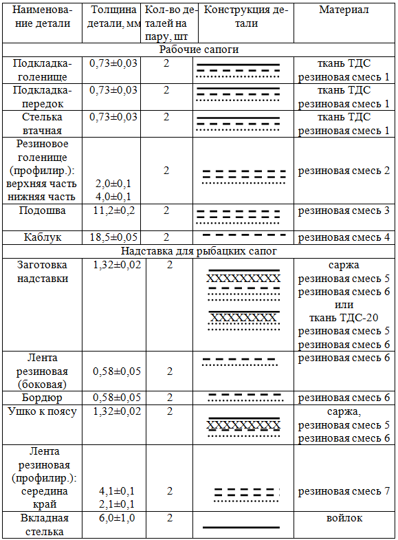 Т а б л и ц а 3.5— Конструкция рабочих и рыбацких сапог