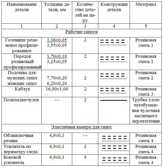 В таблице 3.6 приведена конструкция рабочих сапог и эластичной камеры.