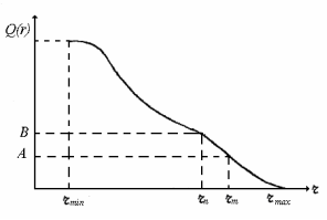 Интегральная или суммарная кривая распределения Q(r) показывает зависимость от радиуса суммарного количества частиц с размерами, превышающими радиус r. Для ее построения на оси абсцисс откладывают значения радиусов в интервале rmin-rmax, а на оси ординат относительное содержание (по массе) частиц с радиусом от rmax до данного радиуса rτ.