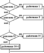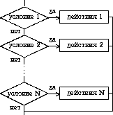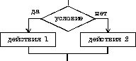 Базовая структура ветвление. Обеспечивает в зависимости от результата проверки условия (да или нет) выбор одного из альтернативных путей работы алгоритма. Каждый из путей ведет к общему выходу, так что работа алгоритма будет продолжаться независимо от того, какой путь будет выбран.