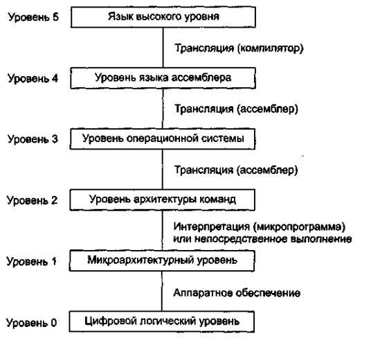 Пятый уровень обычно состоит из языков, разработанных для прикладных программистов. Такие языки называются языками высокого уровня. Существуют сотни языков высокого уровня. Наиболее известные среди них — BASIC, С, C++, Java, LISP и Prolog. Программы, написанные на этих языках, обычно транслируются на уровень 3 или 4. Трансляторы, которые обрабатывают эти программы, называются компиляторами. Отметим, что иногда также используется метод интерпретации. Например, программы на языке Java обычно интерпретируются.