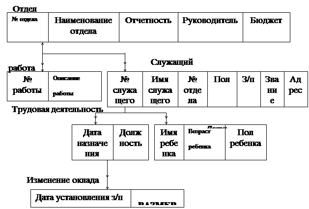 Отдел (№_отдела, название_отдела, отчетность, руководитель, бюджет),