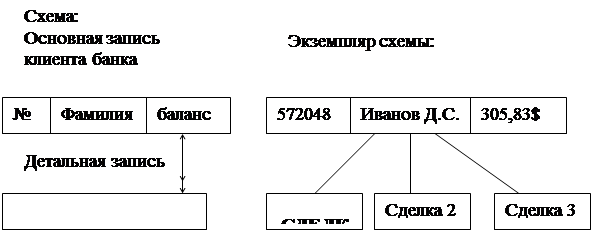 2. Иерархическим файлом называется файл, в котором записи связаны в виде древовидной структуры. На рис. 18 приведен файл типа «основная запись – детальная запись», представляющая собой общий вид иерархического файла с двумя типами записей.