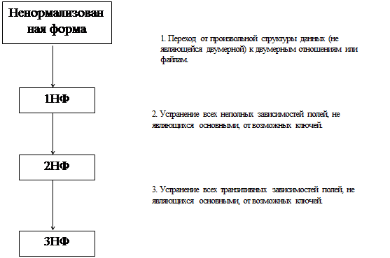 Таким образом, процесс нормализации состоит их трех шагов, которые представлены на рисунке 34.