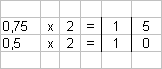Умножить заданное число на новое основание, записанное в виде числа со старым основанием. При каждом умножении целая часть произведения берется в виде очередной цифры соответствующего разряда, а оставшаяся дробная часть принимается за новое множимое. Число умножений определяет разрядность полученного результата.