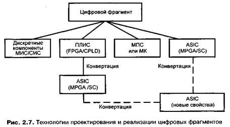Для разработчиков цифровых фрагментов фирмы-производители электронного оборудования предлагают различные варианты технологической реализации. Если исключить разработку полностью заказных схем, то у разработчика остаются направления, показанные на рис. 2.7.