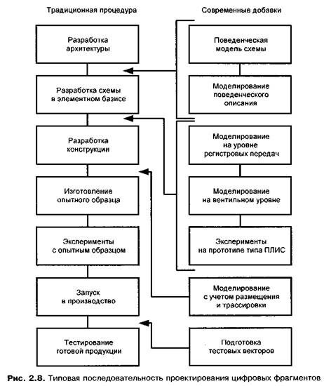 Рассмотрим традиционную реализацию в базисе дискретных элементов типа МИС и СИС. На рис. 2.8 показан маршрут проектирования, характерный для такого способа реализации цифровых фрагментов.