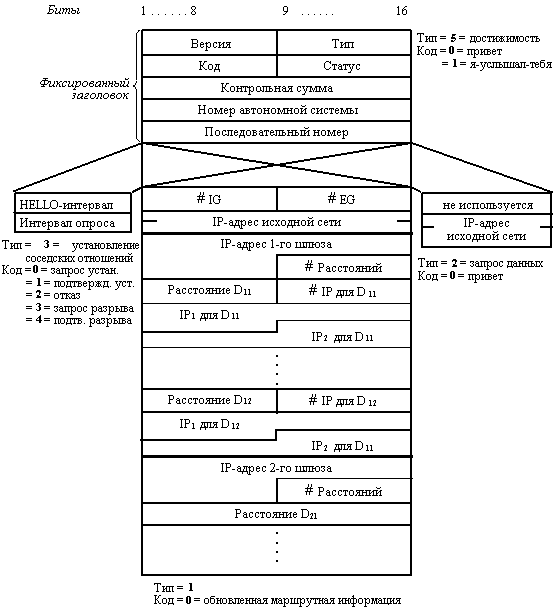Все сообщения протокола EGP передаются в поле данных IP-пакетов. Сообщения EGP имеют заголовок фиксированного формата (рисунок 8.4).