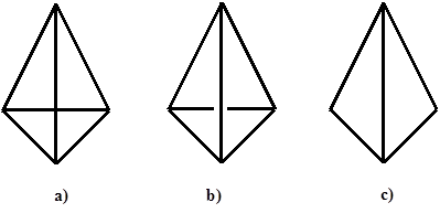 В процессе визуализации объектов, представленных геометрическими моделями возникает задача ликвидации неоднозначностей в создаваемом представлении. Данная задача может быть решена различными способами. Рассмотрим простой пример визуализации пирамиды, представленной каркасной моделью, рис.