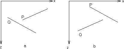 c. Верно ли, что Р целиком лежит по ту сторону плоскости, несущей Q, которая расположена дальше от точки наблюдения (рис.3,а)?