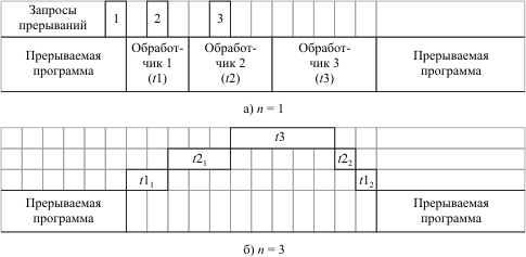 Рис. 2. Работа системы прерываний при различной глубине прерываний