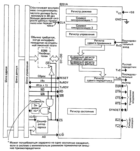 Рис. 9.13. Последовательный связной интерфейс 8251А