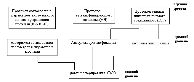 В соответствии с протоколом IPSec архитектура безопасности разделена на 3 уровня: