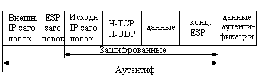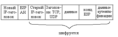 ESP в туннельном режиме шифрует и, если нужно, идентифицирует весь внутренний пакет IP, включая внутренний заголовок IP.