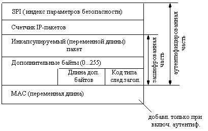 Дополнительные байты добавляются для обеспечения кратности длины инкапсулируемого IP-пакета и размера блока алгоритма шифрования.