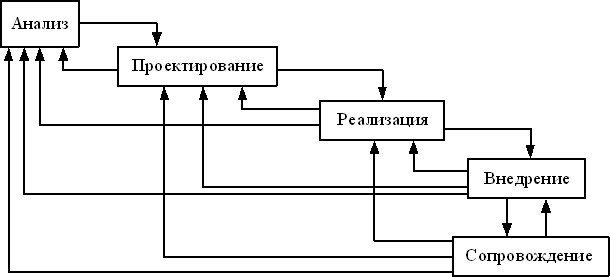 В целом, модели жизненного цикла могут быть представлены двумя типами: последовательностный жизненный цикл (Цикл Боэма), который заключается в том, что каждый из этапов жизненного цикла начинается только после окончания предыдущего. В случае возникновения ошибок, осуществляется переход на тот этап, который привёл к возникновению данной ошибки.