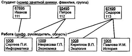 Пример 15.18. Примером данного отношения служит связь между информационны­ми объектами СТУДЕНТ и ПРЕПОДАВАТЕЛЬ: