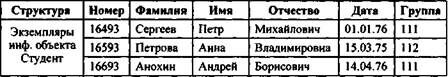 Пример 15.8. На рис. 15.14 представлен пример структуры и экземпляров информационного объекта Студент.