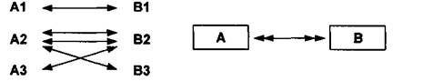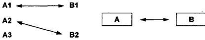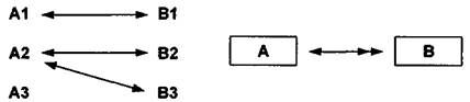 Связь один к одному (1:1) предполагает, что в каждый момент времени одному экземпляру информационного объекта А соответствует не более одного экземпляра инфор­мационного объекта В и наоборот.