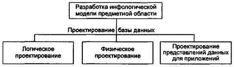Важнейшим этапом проектирования базы данных является разработка инфологической (информационно-логической) модели предметной области, не ориентированной на СУБД. В инфологической модели средствами структур данных в интегрированном виде от­ражают состав и структуру данных, а также информационные потребности приложений (задач и запросов).