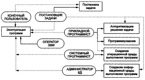 Рис. 8.3. Схема взаимодействия специалистов, связанных с созданием и эксплуатацией программ