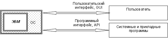 Для упрощения доступа к ресурсам ЭВМ ОС поддерживают пользовательский и программный интерфейсы (Рис. 3).