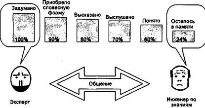 Известно, что потери информации при разговорном общении велики (рис. 17.3). В связи с этим рассмотрим проблему увеличения информативности общения аналитика и эксперта за счет использования психологических знаний.