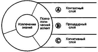 В соответствии с этой структурой выделим три "слоя" психологических проблем, возникающих при извлечении знаний (рис. 17.4), и последовательно рассмотрим их.