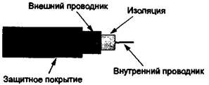 Коаксиальный кабель (рис. 6.20) по сравнению с витой парой обладает более высокой механической прочностью, помехозащищенностью и обеспечивает скорость передачи информации до 10-50 Мбит/с. Для промышленного использования выпускаются два типа коаксиальных кабелей: толстый и тонкий. Толстый кабель более прочен и передает сигналы нужной амплитуды на большее расстояние, чем тонкий. В то же время/гонкий кабель значительно дешевле. Коаксиальный кабель так же, как и витая пара, является одним из популярных типов передающей среды для ЛВС.