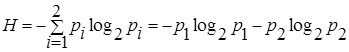 = 1 для данного случая и обозначив р1 = р, получим р2=1-p1=q, а энтропия H определится выражением